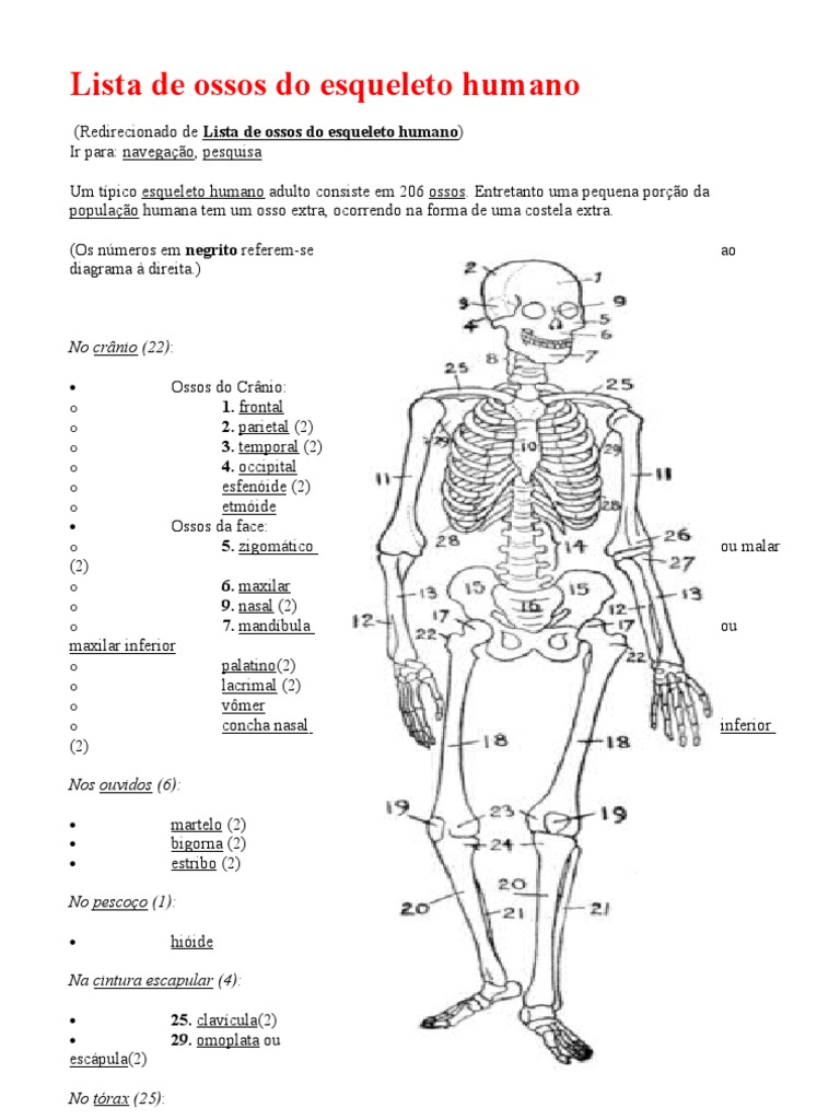 Lista de Ossos Do Esqueleto Humano Documento | PDF | Vértebra ...