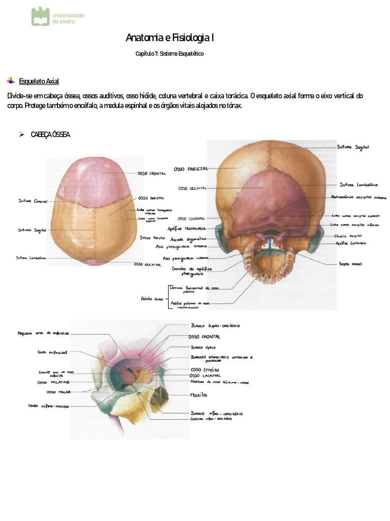 Esqueleto axial e suas especificações | Resúmenes Anatomía | Docsity