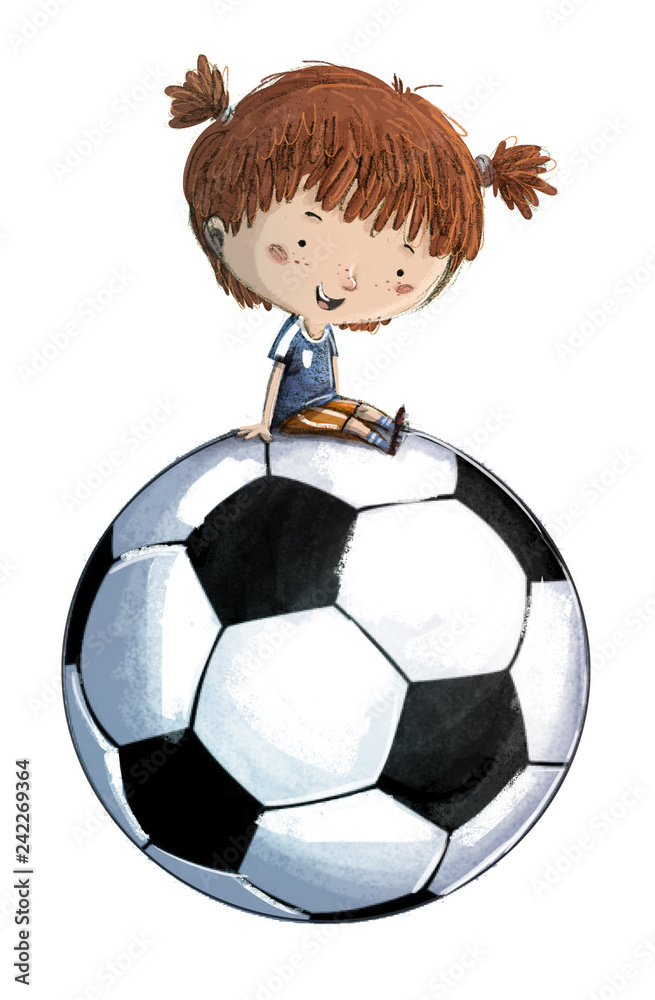 Niña con balon de futbol gigante Stock Illustration | Adobe Stock