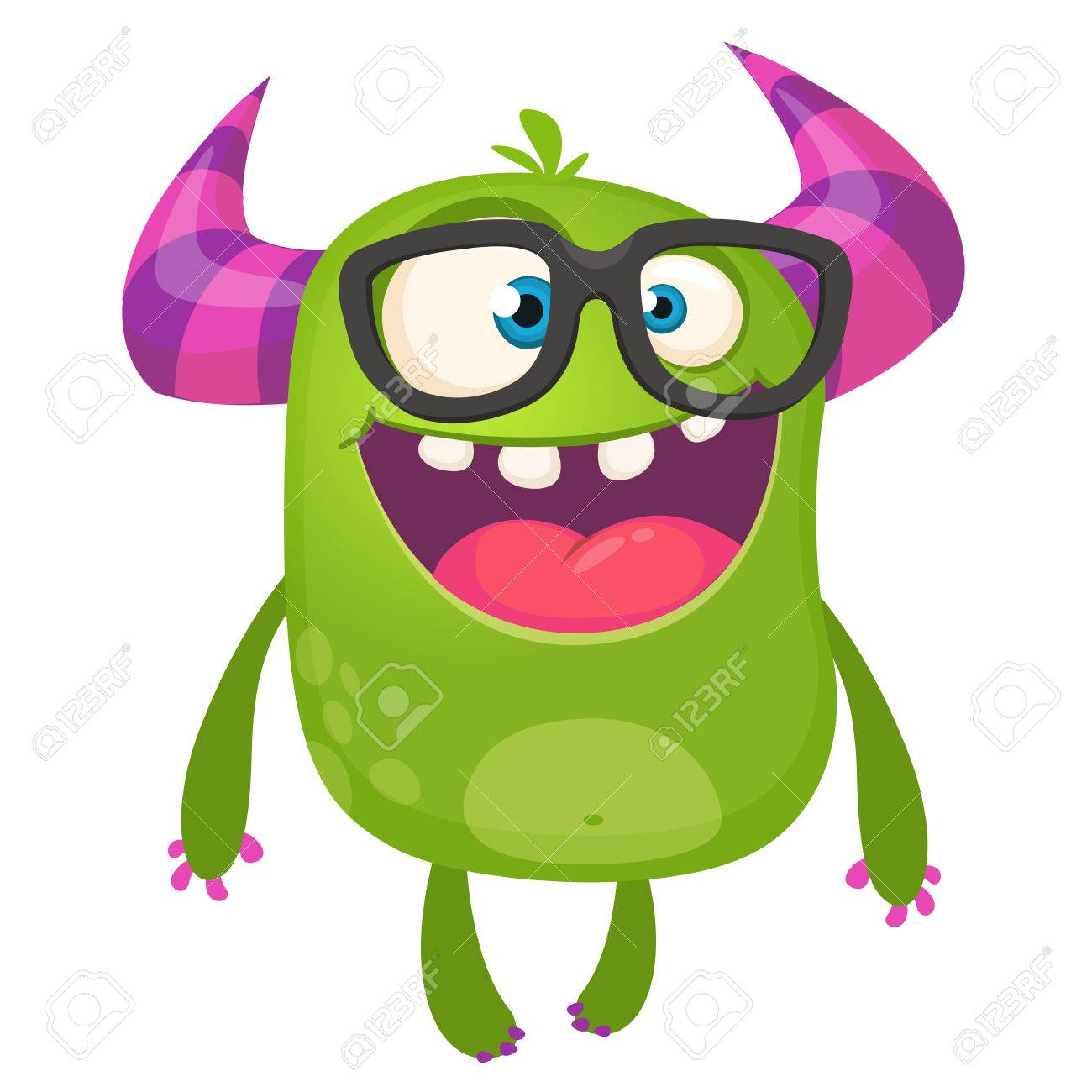 Dibujos Animados Monstruo Verde Nerd Con Gafas. Ilustración De ...