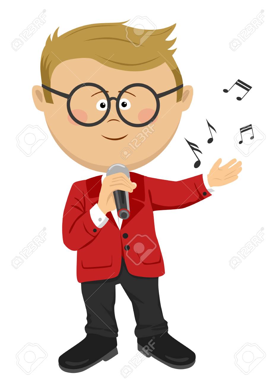 Lindo Niño Nerd Con Gafas Canta Con Un Micrófono Ilustraciones svg ...