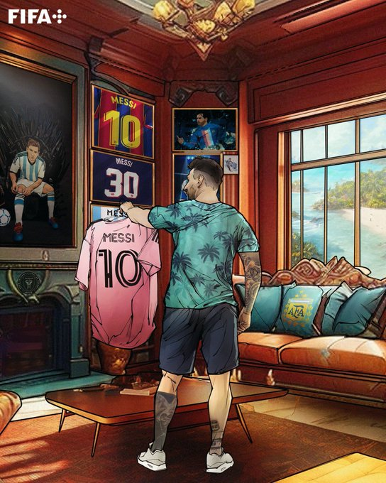 Corta 🏆 on X: ""¡Sí, muchachos! Messi llegó a Miami" La cuenta de la Copa Mundial FIFA compartió un dibujo de Lionel Messi para celebrar su llegada a Inter Miami. https://t.co/YUKIxqgZnT" /
