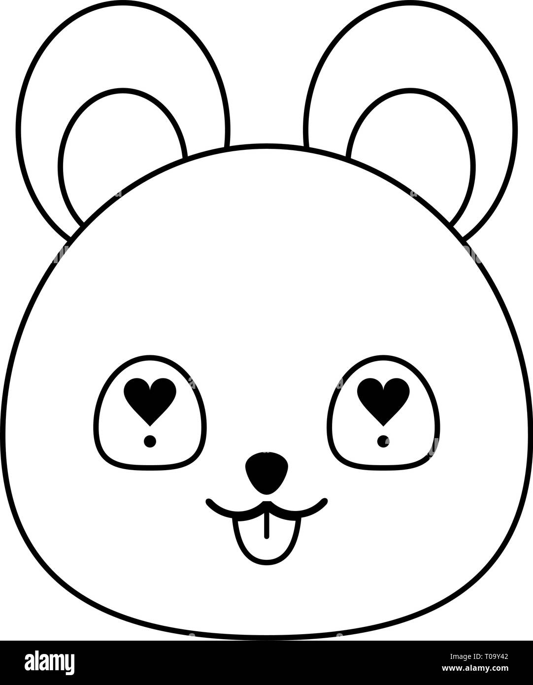 Cara de dibujos animados de conejo kawaii en blanco y negro Imagen ...