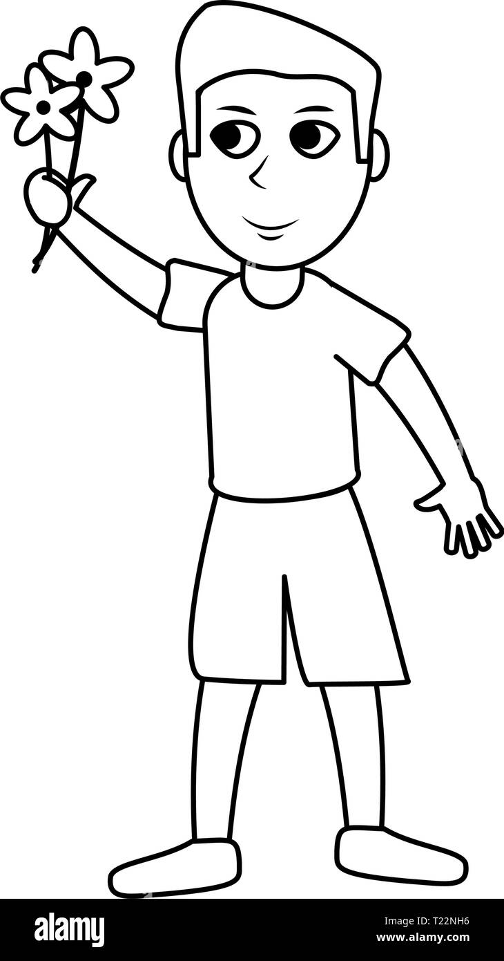 Niño con dibujos animados de flores en blanco y negro Imagen ...