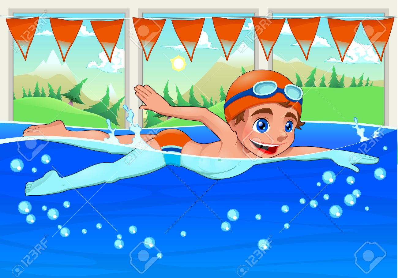 Caricatura De Un Pequeño Nadador En La Piscina Ilustración del ...
