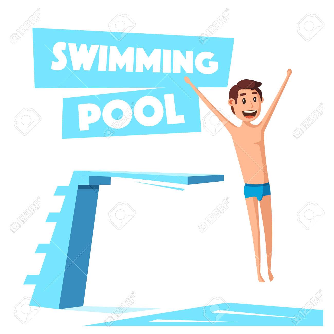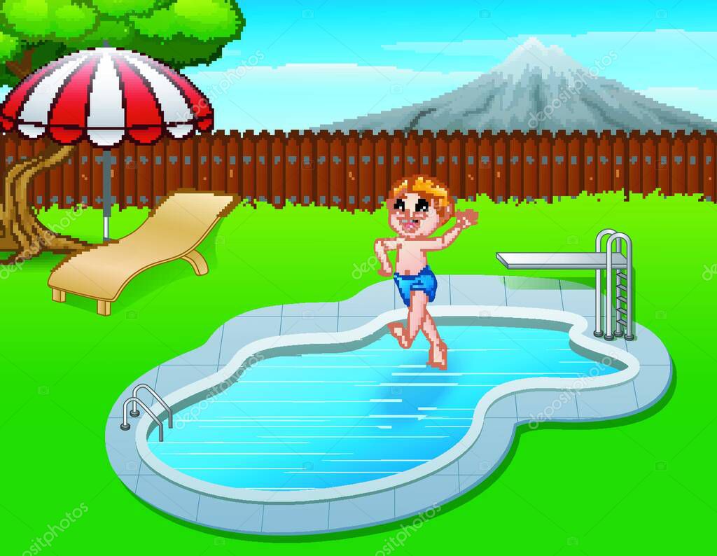 Niño de dibujos animados saltando en la piscina 7573284 Vector en ...