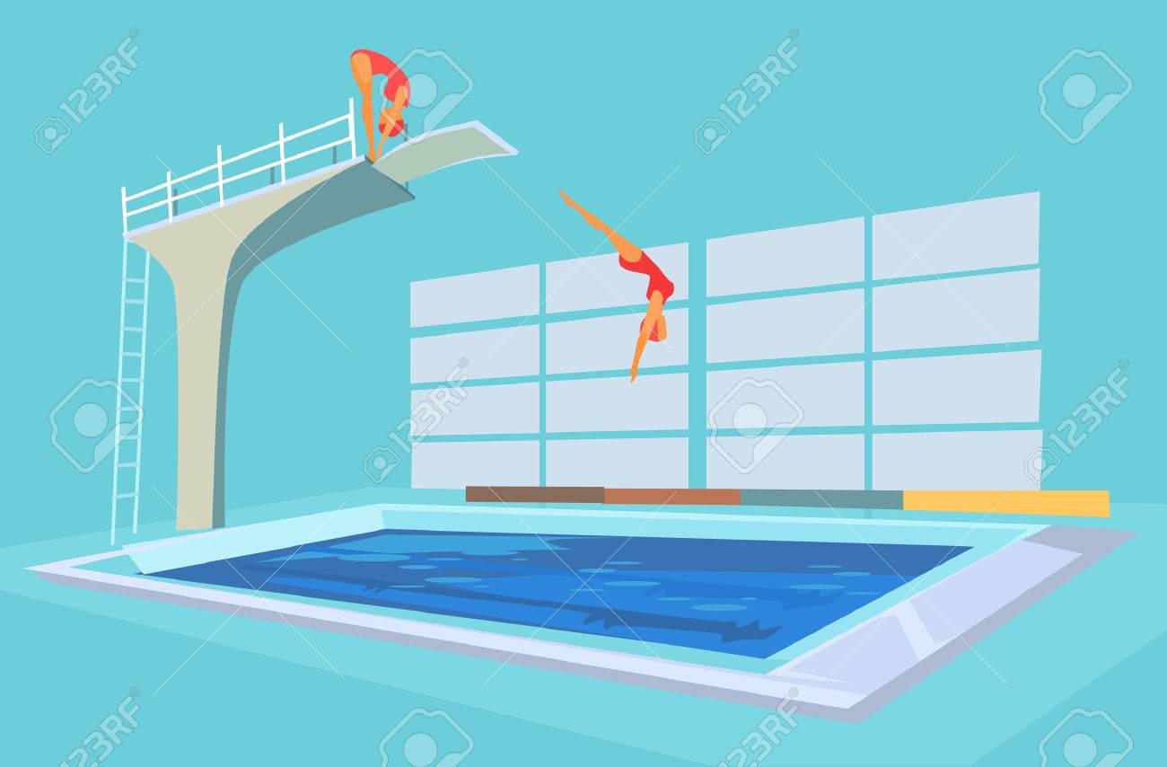 Piscina Deporte. Vector Ilustración De Dibujos Animados Plana ...