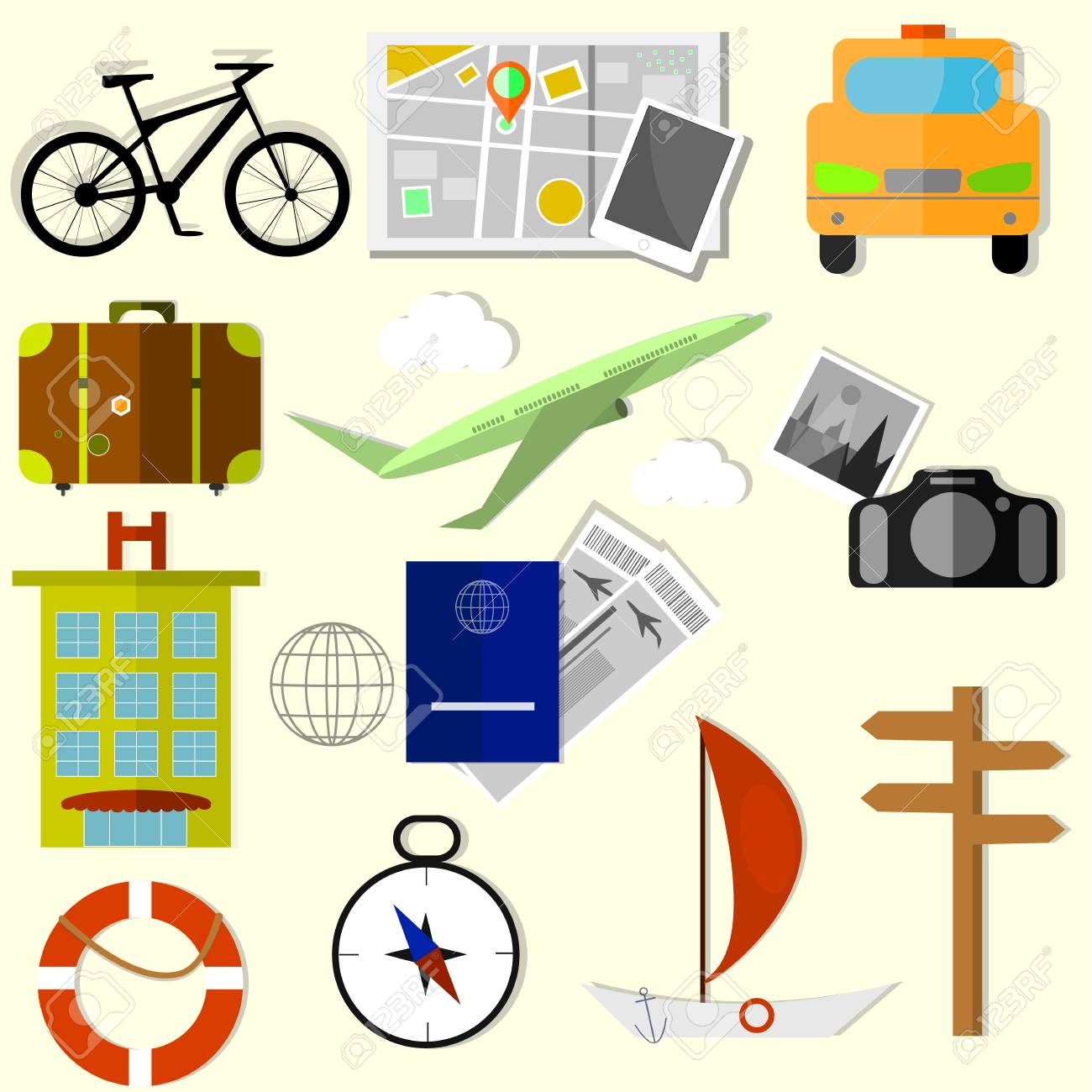 Set Of Traveling Objects In Flat Design Style Royalty Free SVG ...