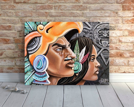 Impresión en lienzo Rey y Reina Azteca, Arte Azteca, Arte Chicano ...
