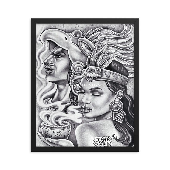 Póster enmarcado Rey y reina azteca, Arte chicano, Arte azteca ...