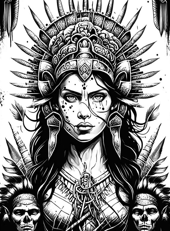 Páginas para colorear de reinas guerreras aztecas, mayas y olmecas ...