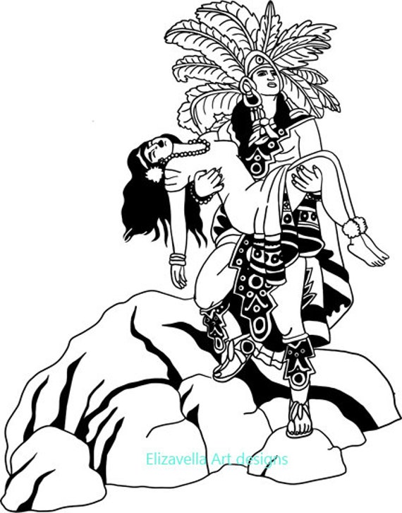 Guerrero azteca sosteniendo mujer png SVG , princesa azteca svg , jpg imprimible arte indio mexicano, gente de México, descarga digital instantánea,