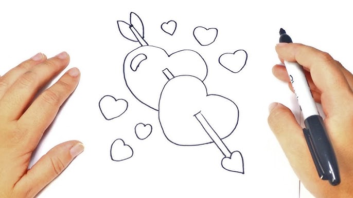 COMO DIBUJAR UN CORAZON, DIBUJOS FACILES, DIBUJO DE CORAZON PASO A PASO, CORAZON CON FLECHA.