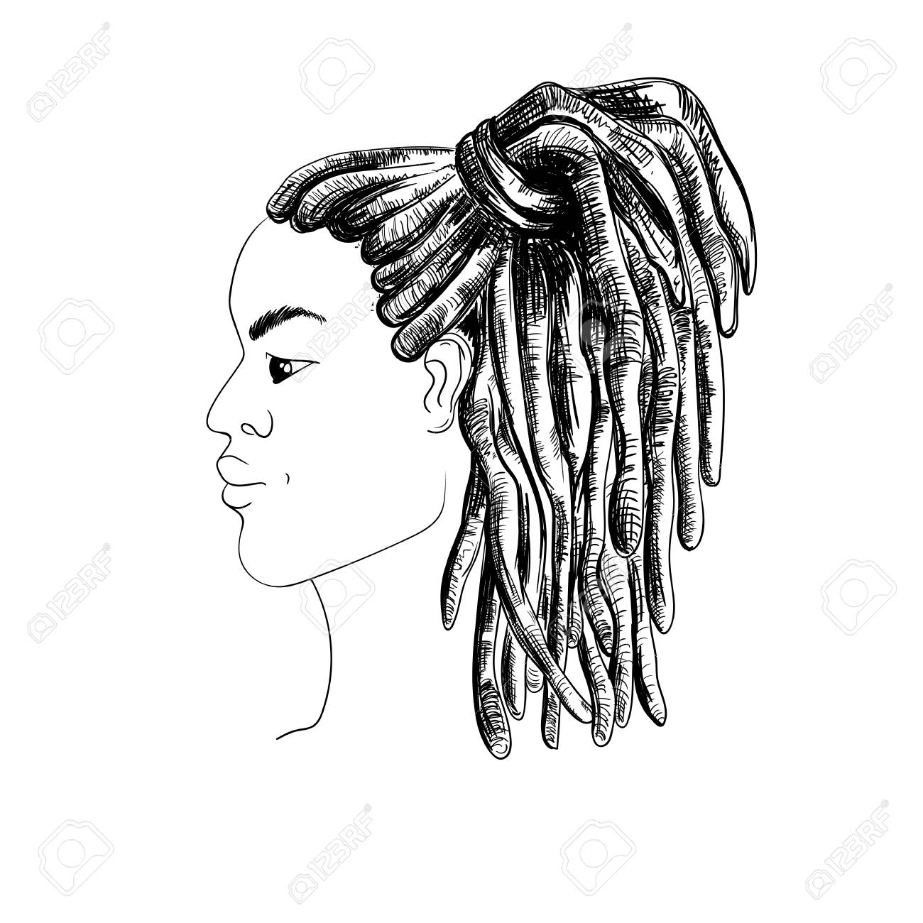Un negro y blanco dibujo de un mujer con rastas 55607422 Vector en ...
