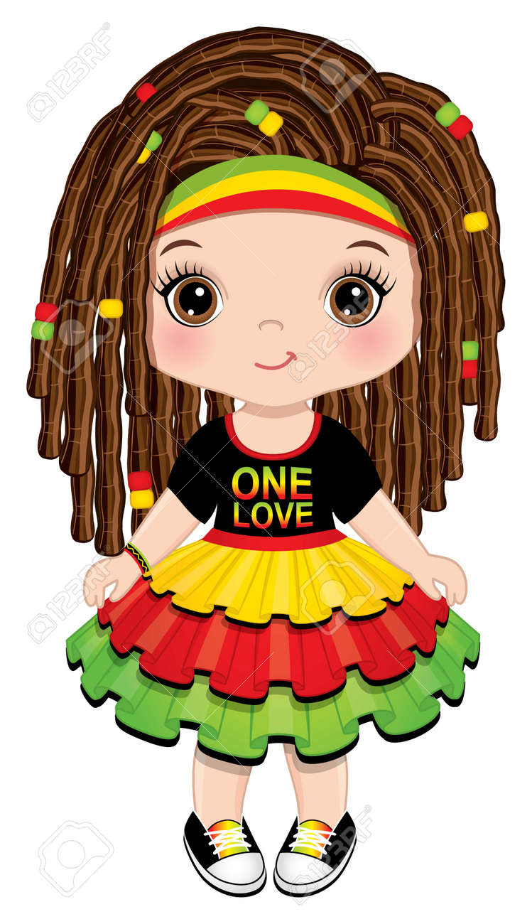 Linda Niña Reggae Con Rastas Con Vestido Rastafari. Chica Reggae ...