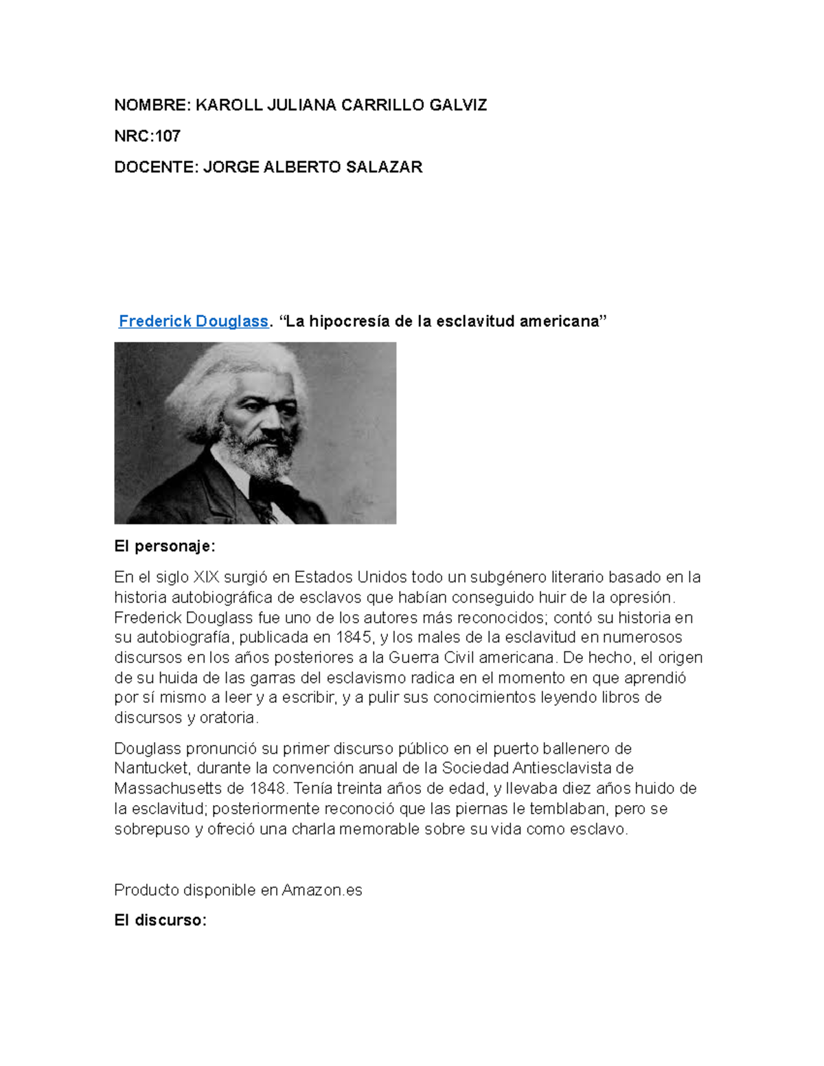 Discurso de Frederick Douglass La hipocresía de la esclavitud