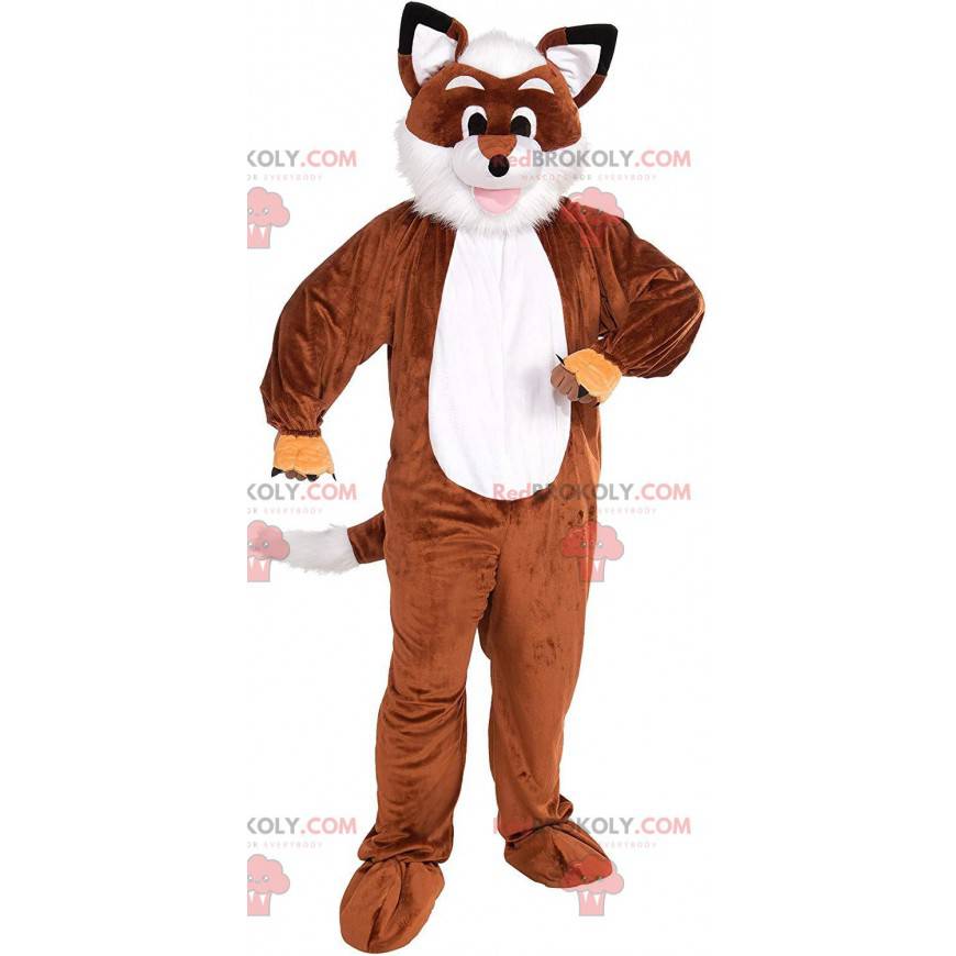 Mascota de zorro marrón y blanco, disfraz de