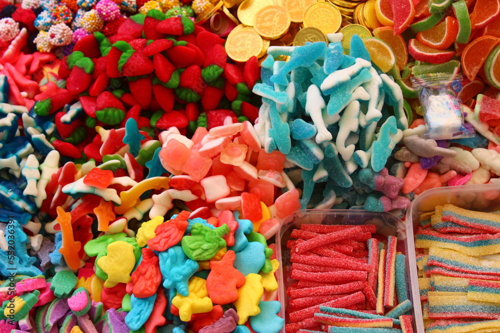 Grupo de dulces, gomitas y caramelos Stock Photo | Adobe Stock