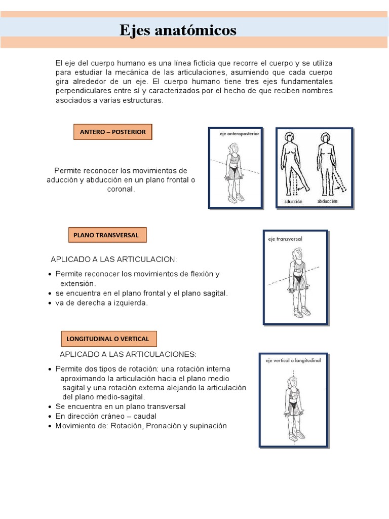 Ejes de movimiento del cuerpo humano | Apuntes de Ciencias | Docsity