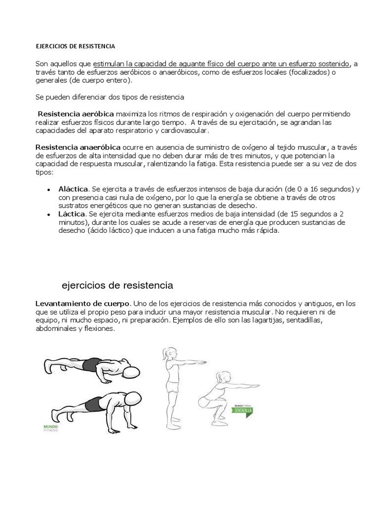 15 EJEMPLOS DE EJERCICIOS DE RESISTENCIA | Apuntes de Educación ...