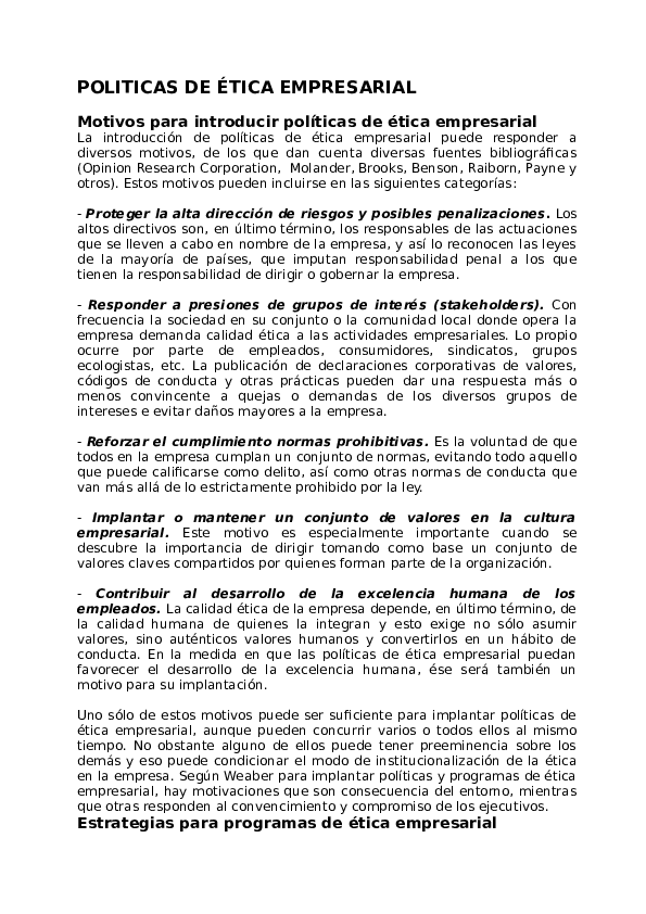 DOC) POLITICAS DE ÉTICA EMPRESARIAL 16-02-13