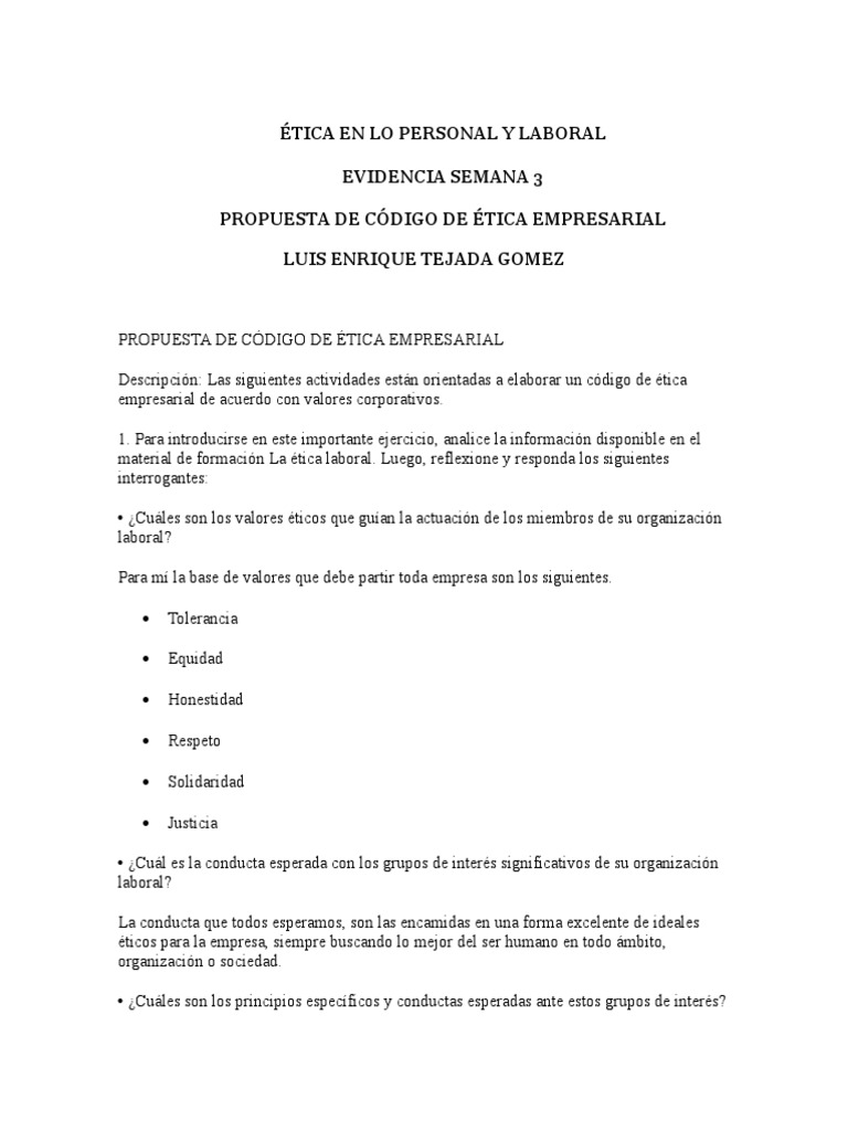 Propuesta de Codigo de Etica Empresarial | PDF | Comportamiento ...