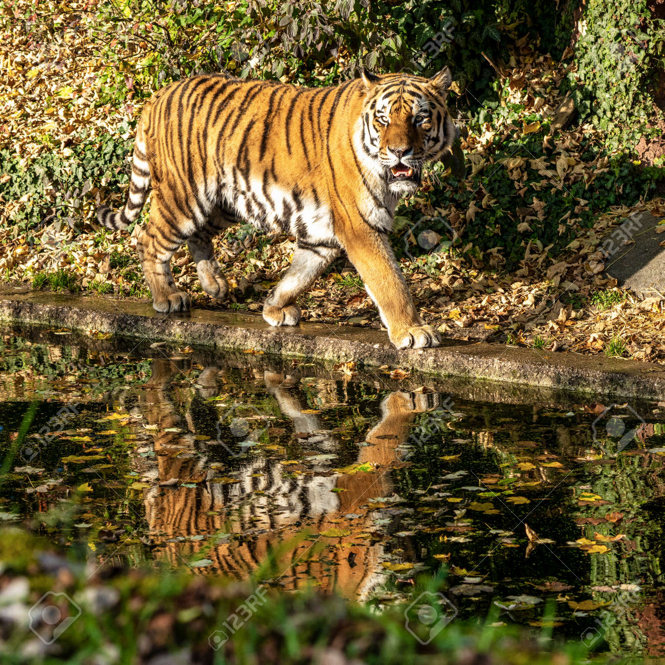 El Tigre Siberiano Panthera Tigris Altaica En El Zoológico Imagen ...