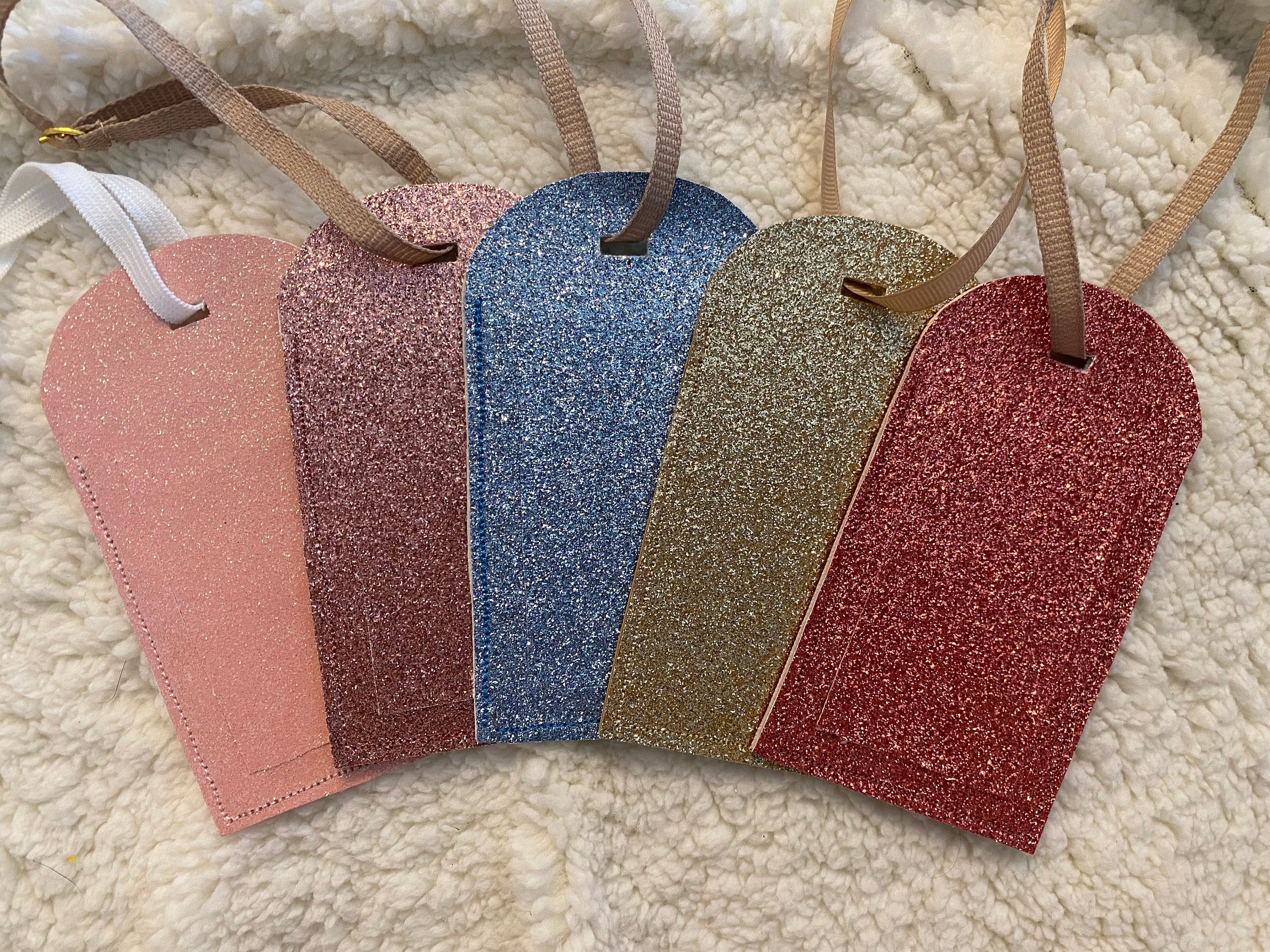 Etiquetas de equipaje con purpurina brillante de lentejuelas ...