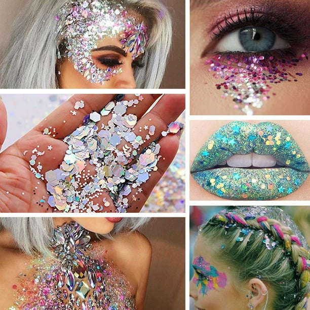 3 paquetes de lentejuelas con purpurina holográfica para rostro ...