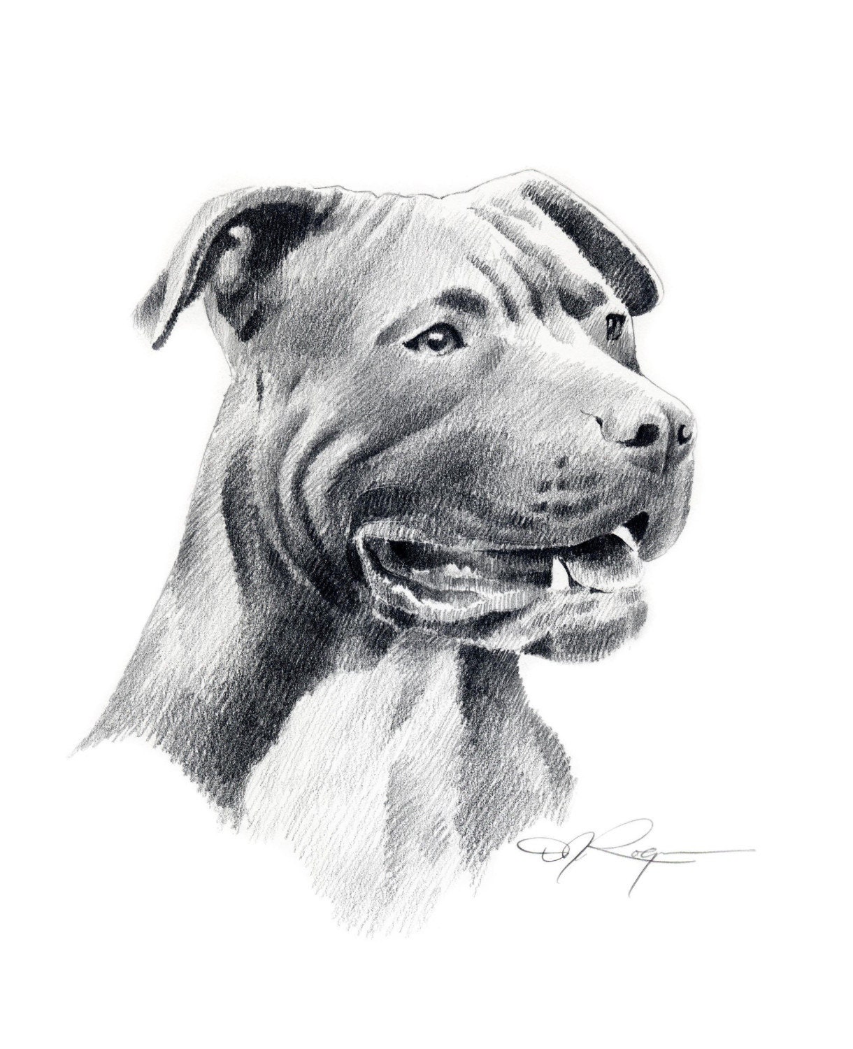 American Pit Bull Terrier Dog Art Print by Artist DJ Rogers - Etsy