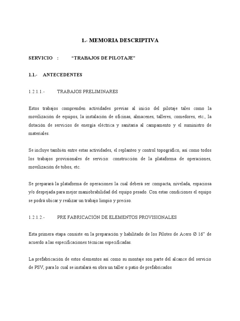 Memoria Descriptiva-Pilotes Hincados | PDF | Tubería (transporte ...