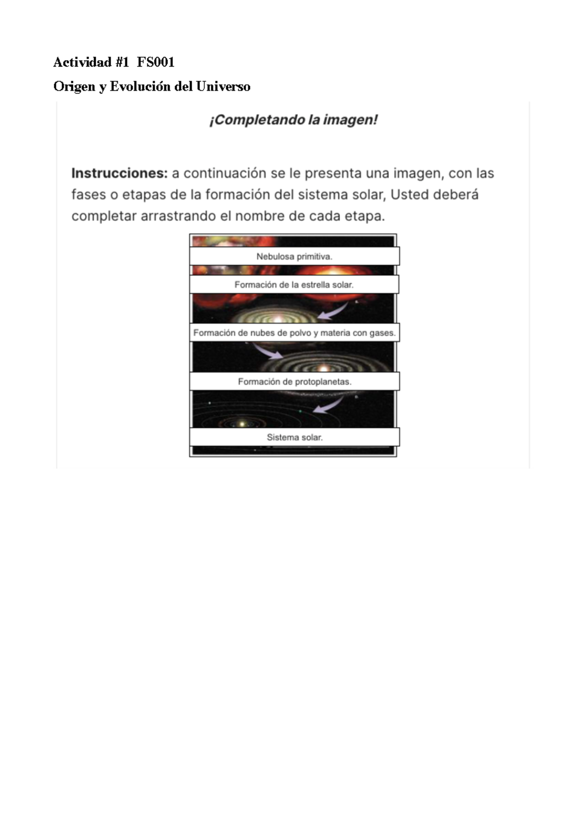 Actividad #1 FS001 - Nebulosa primitiva. Formación de la estrella ...