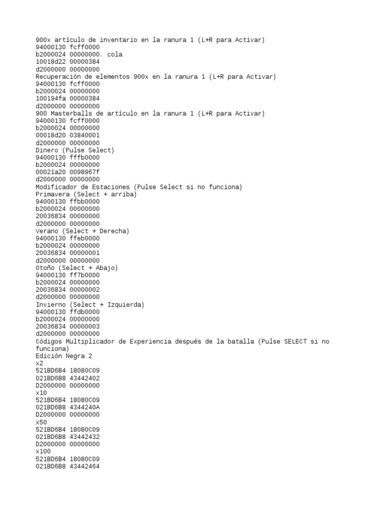 Cheats Pokémon Blanco 2 y Pokémon Negro 2 Español | PDF | Role ...