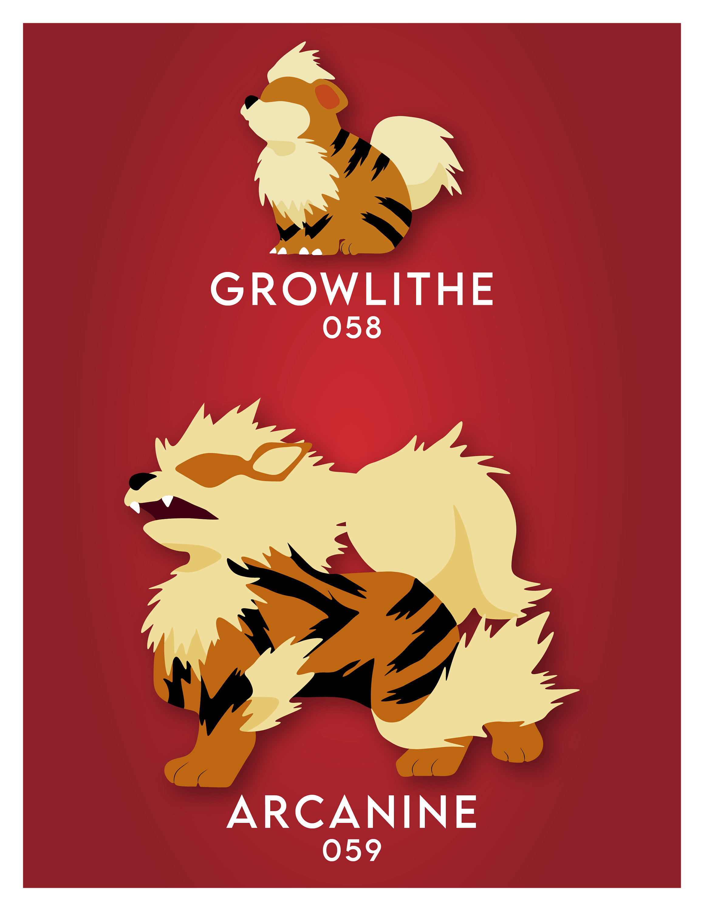 Minimal Pokemon Growlithe & Arcanine Evolution Art Print Pokemon ...