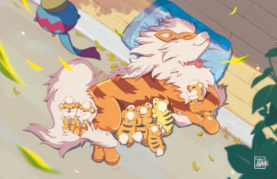 Arcanine Growlithe Sleeping With Ditto Pokemon Fanart - Etsy