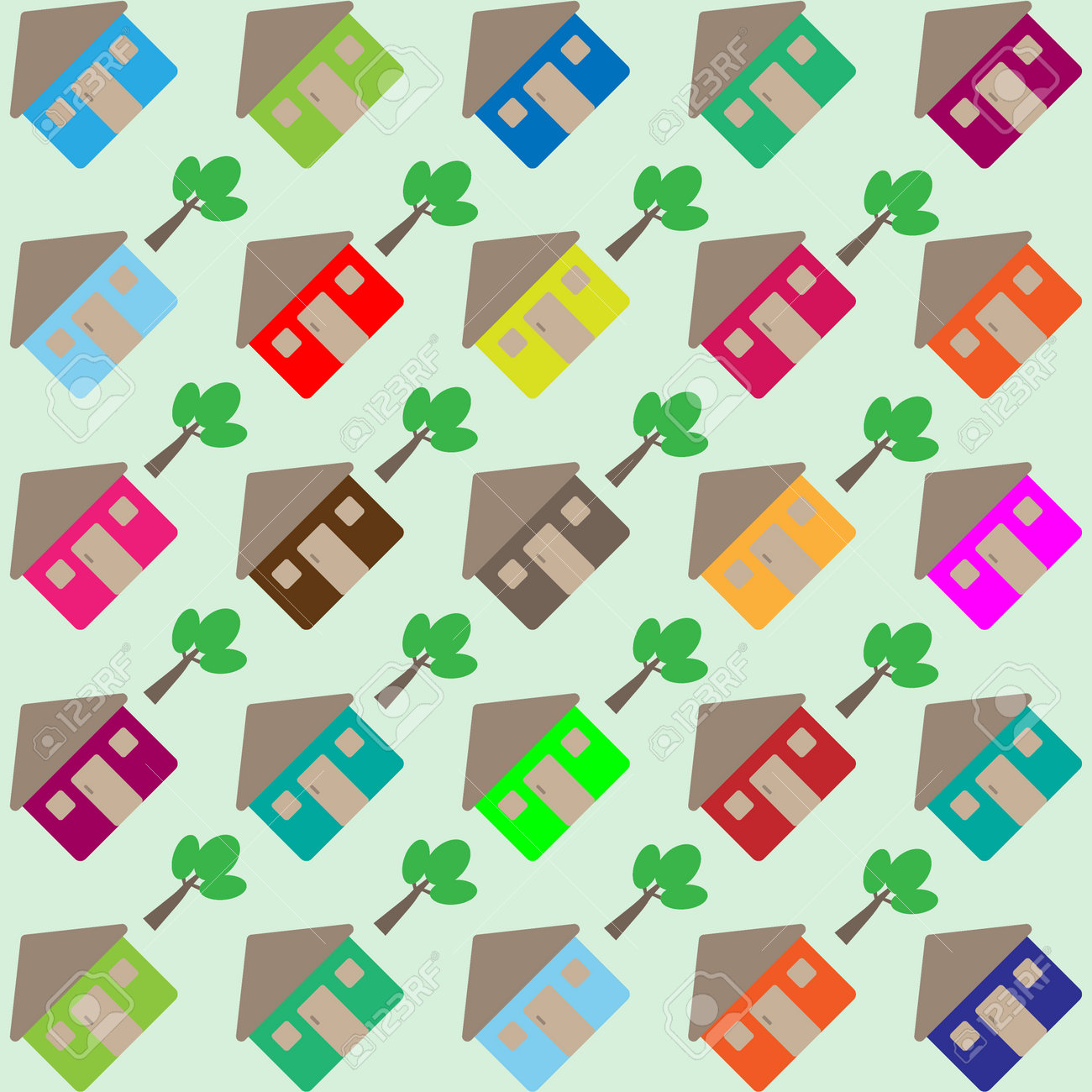 Ilustración Casa Y Árbol Patrón Plano Icono Fondo De Pantalla ...