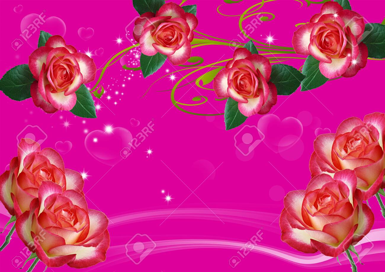 Ilustración 3d, Fondo Rosa Fuerte, Rosas Grandes, Corazones ...