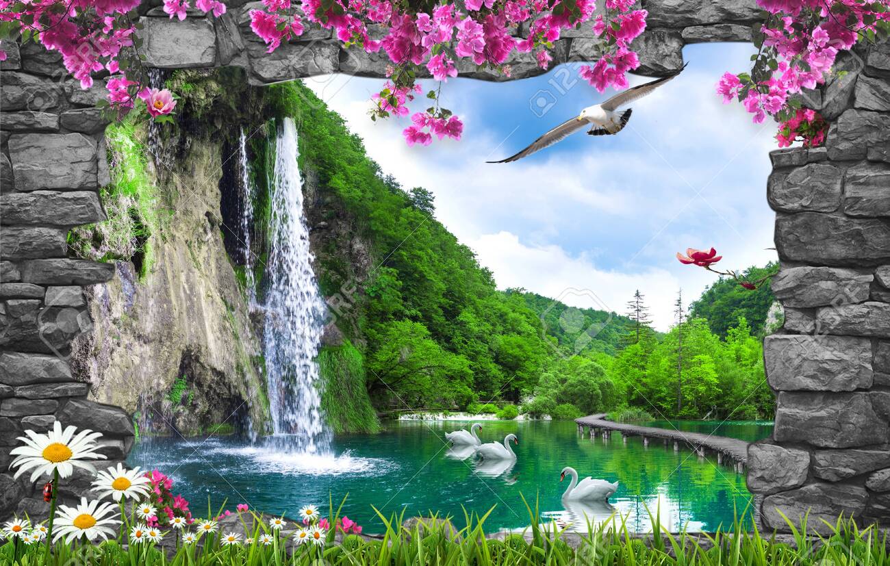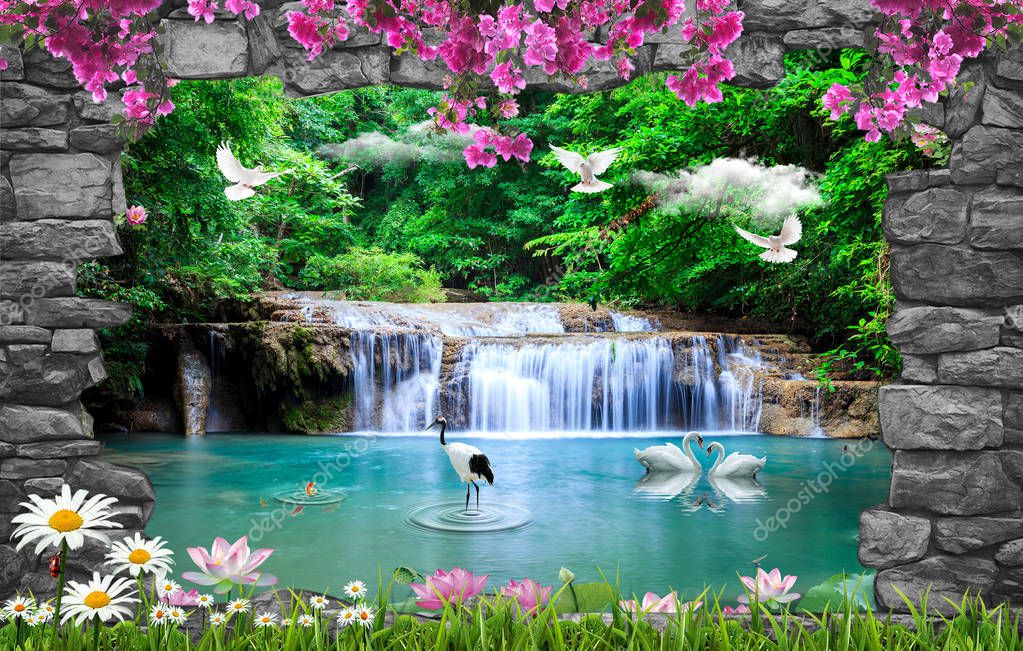 Download 3D Waterfall - Nature's Serenity Wallpaper | Wallpapers.com