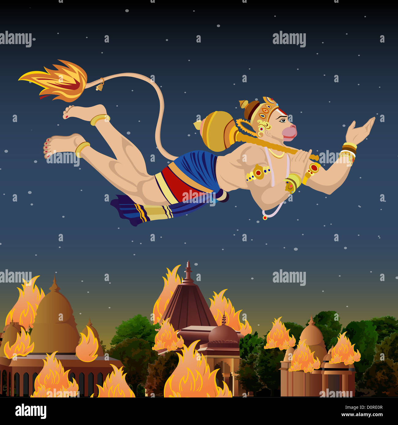 Ilustración Clipart De Hanuman Volando Con Maza Y Fondo ...