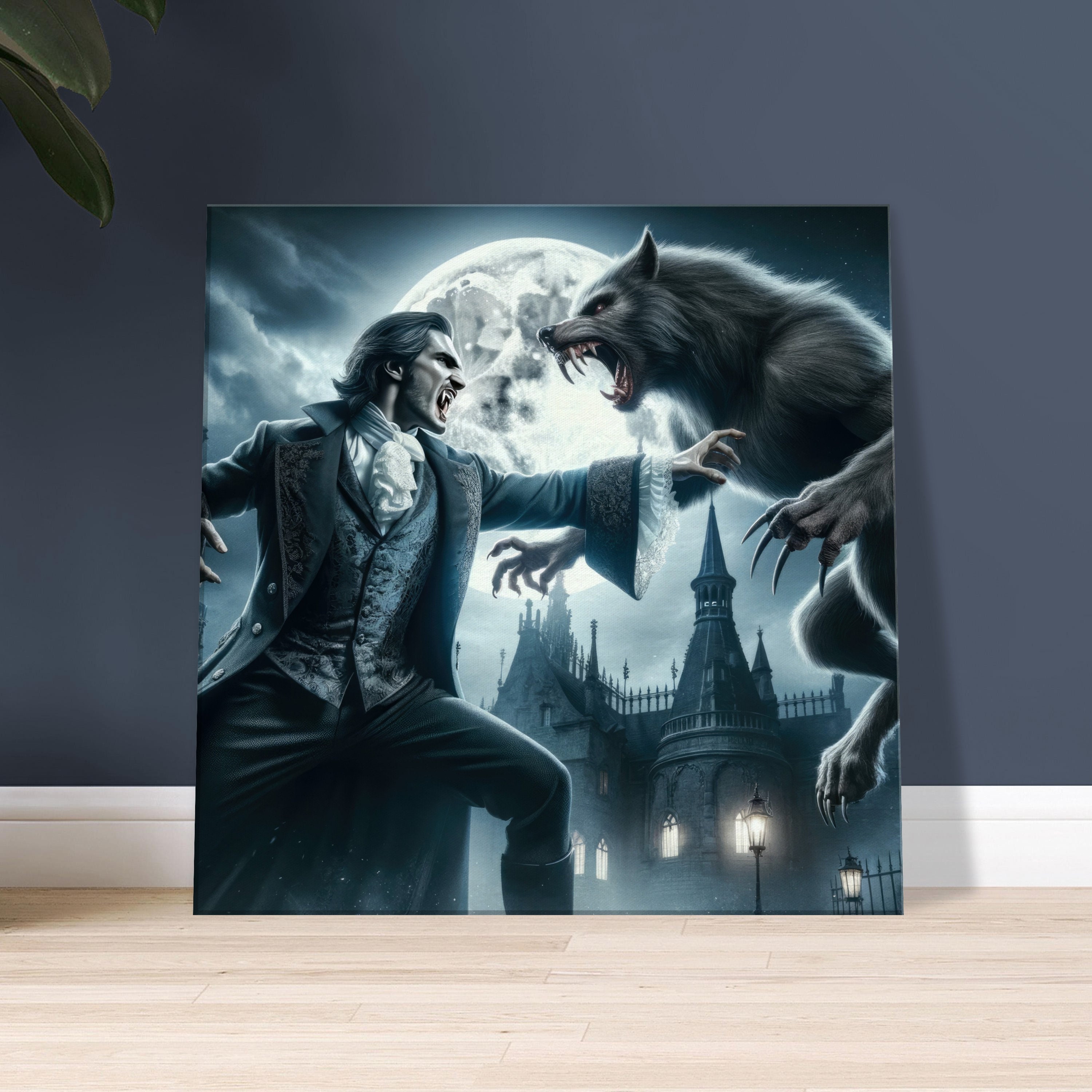 Gothic CANVAS Print Vampire Vs. Werewolf Outside of a Castle Under ...