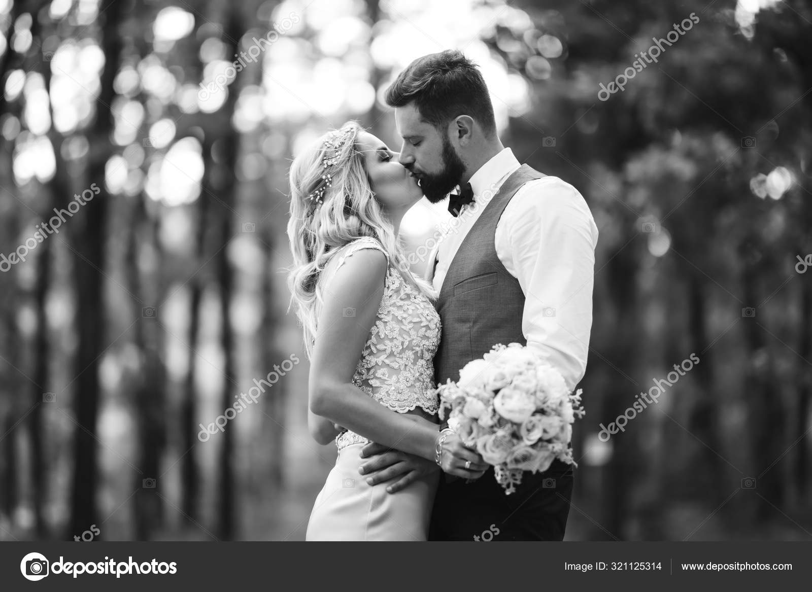 Sensual Foto Blanco Negro Los Novios Elegante Pareja Recién ...