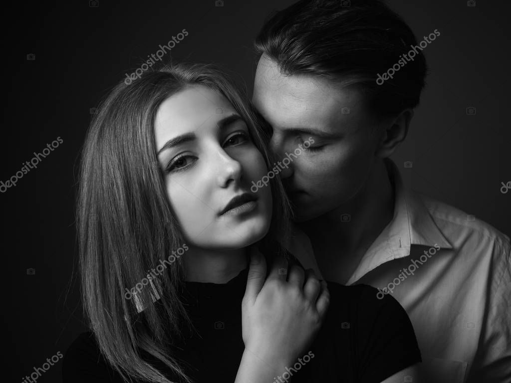 Foto Blanco Negro Una Joven Pareja Enamorada — Foto de stock ...