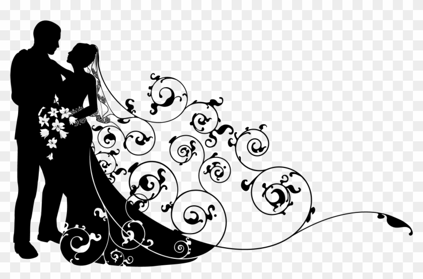 Silueta En Blanco Y Negro Vector Boda Simple Novios PNG ,dibujos ...