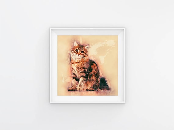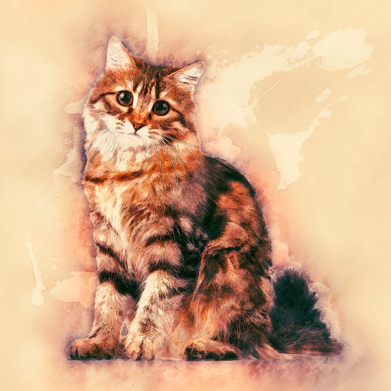 Arte del gato siberiano Pintura de acuarela del gato siberiano ...