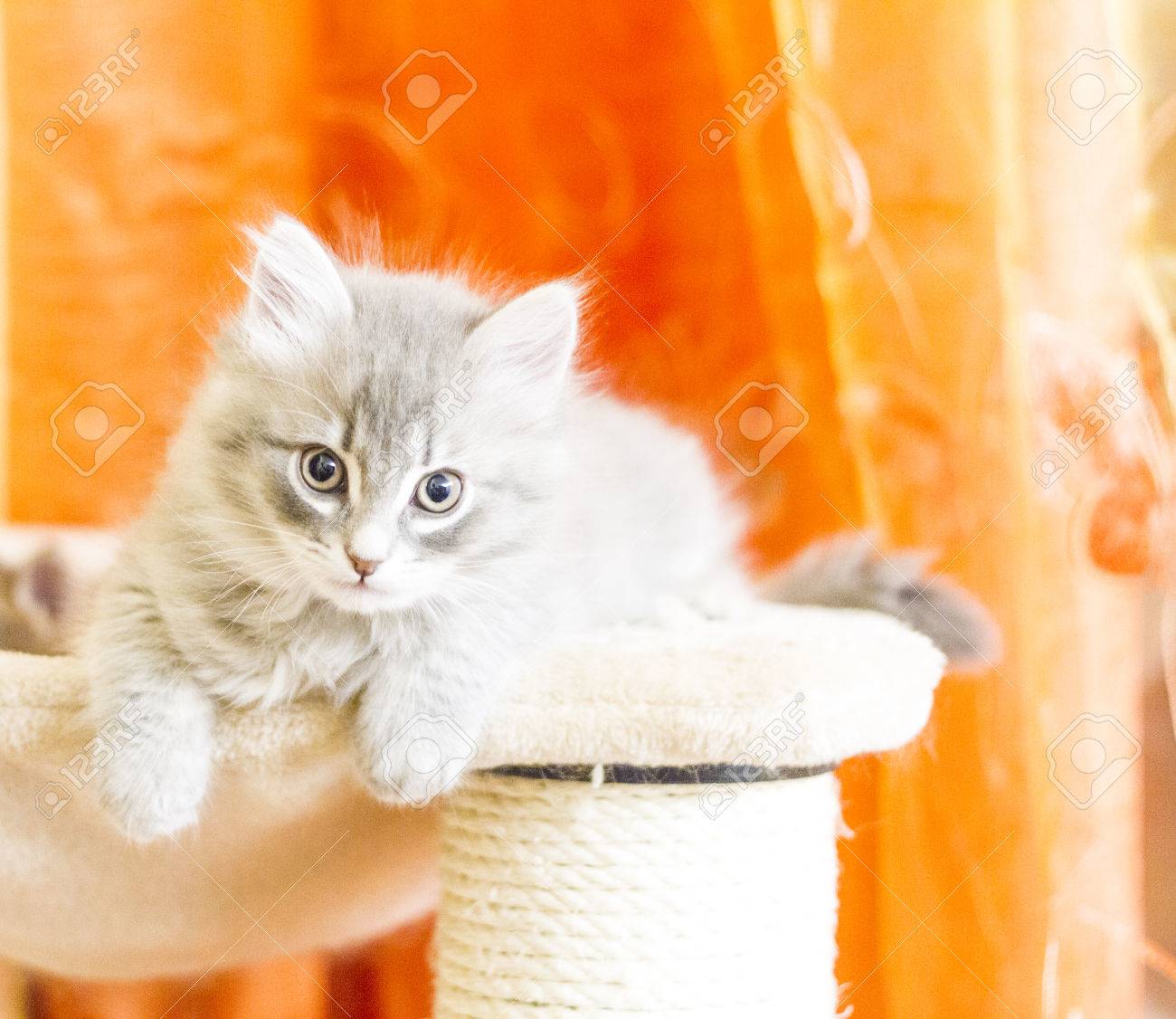 Gatito Beige Fluffy De Gato Siberiano Sobre Fondo Naranja Imagen ...