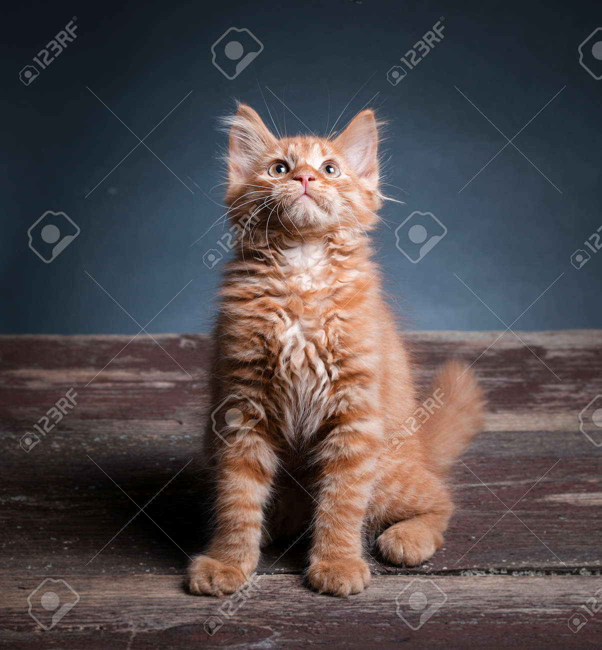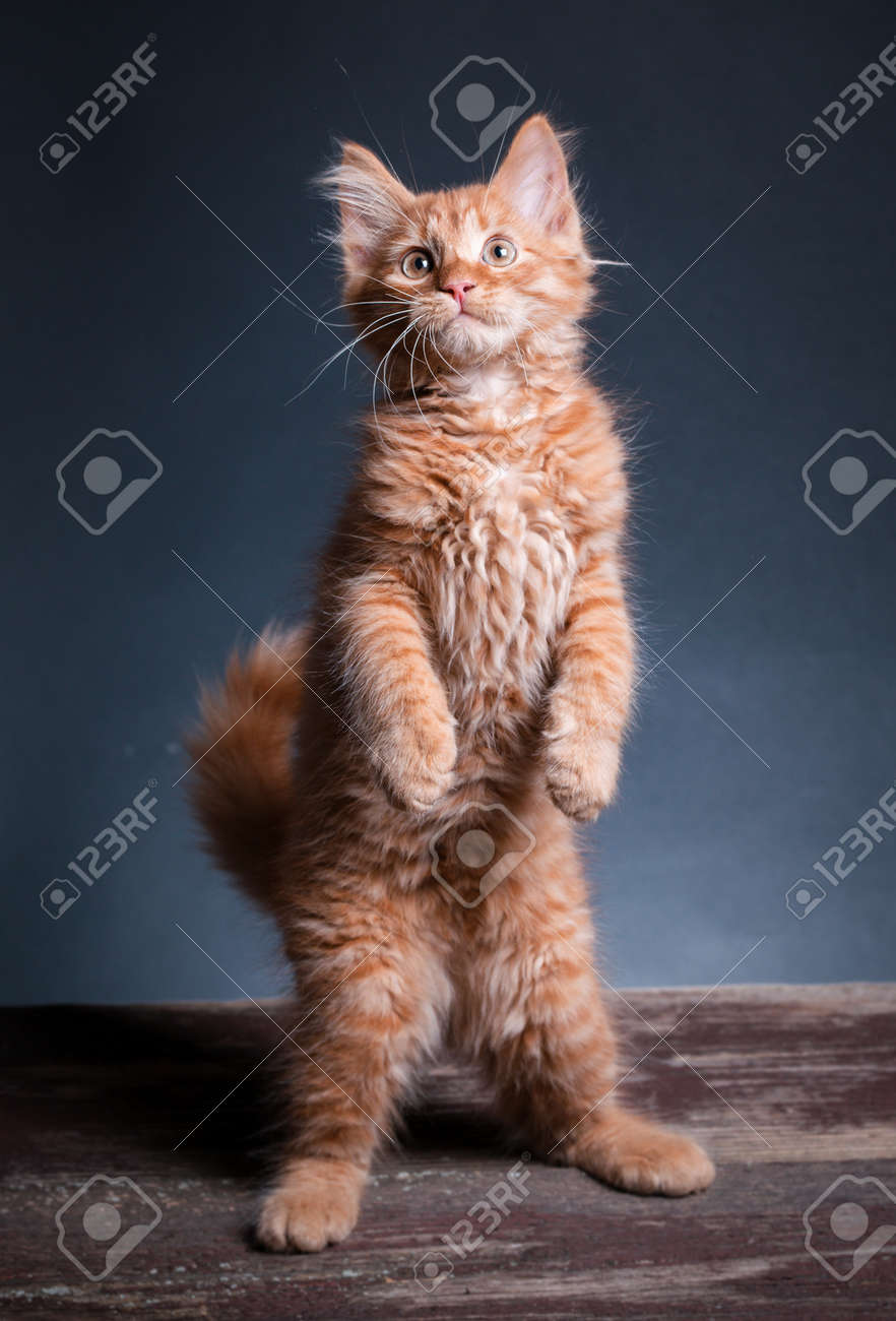 Imagen De Un Gatito Siberiano Naranja Parado En Una Mesa De Madera ...