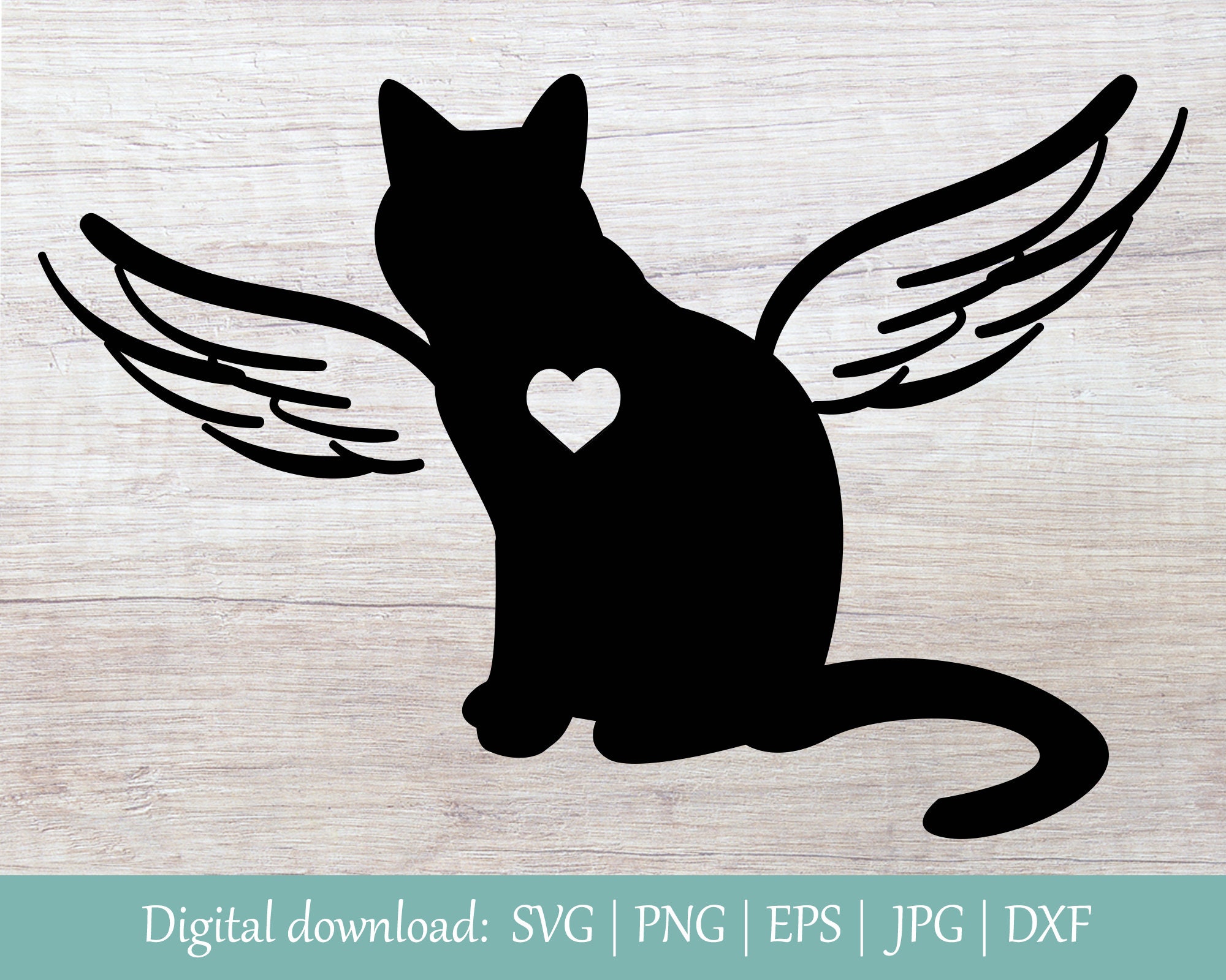 Gráfico de gato negro con alas de ángel y halo · Creative Fabrica