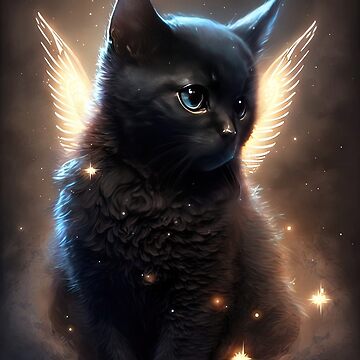 Ángel fotorrealista, gato negro con alas blancas · Creative Fabrica