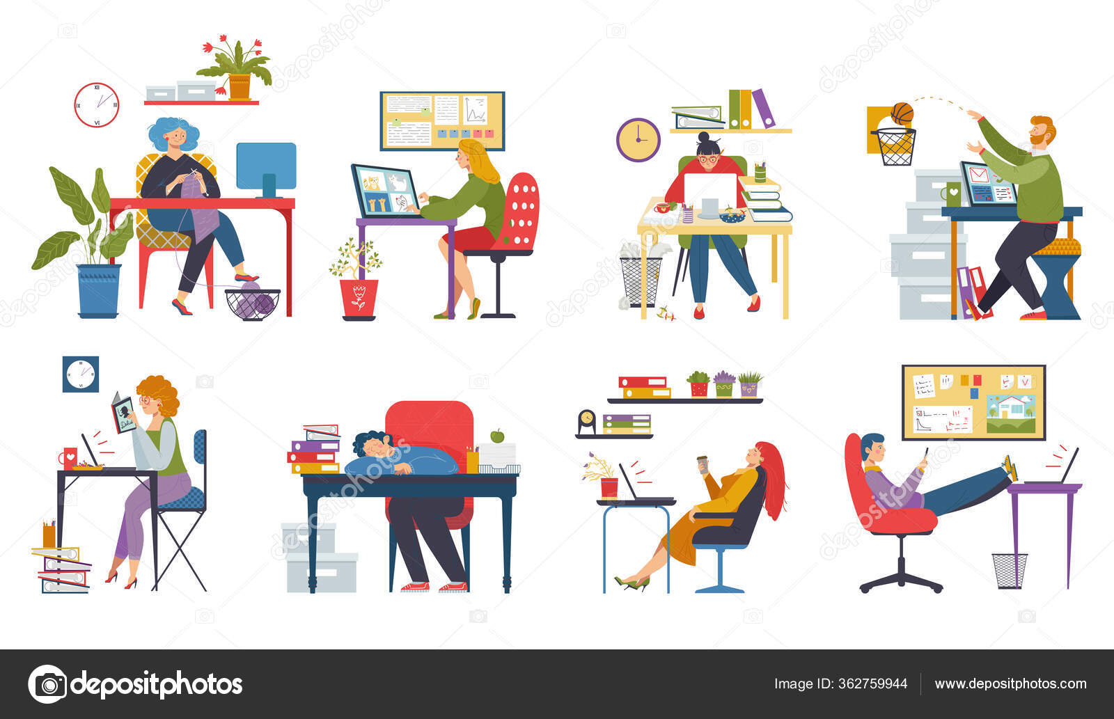 Procrastinación en el trabajo, gente perezosa en la oficina ...