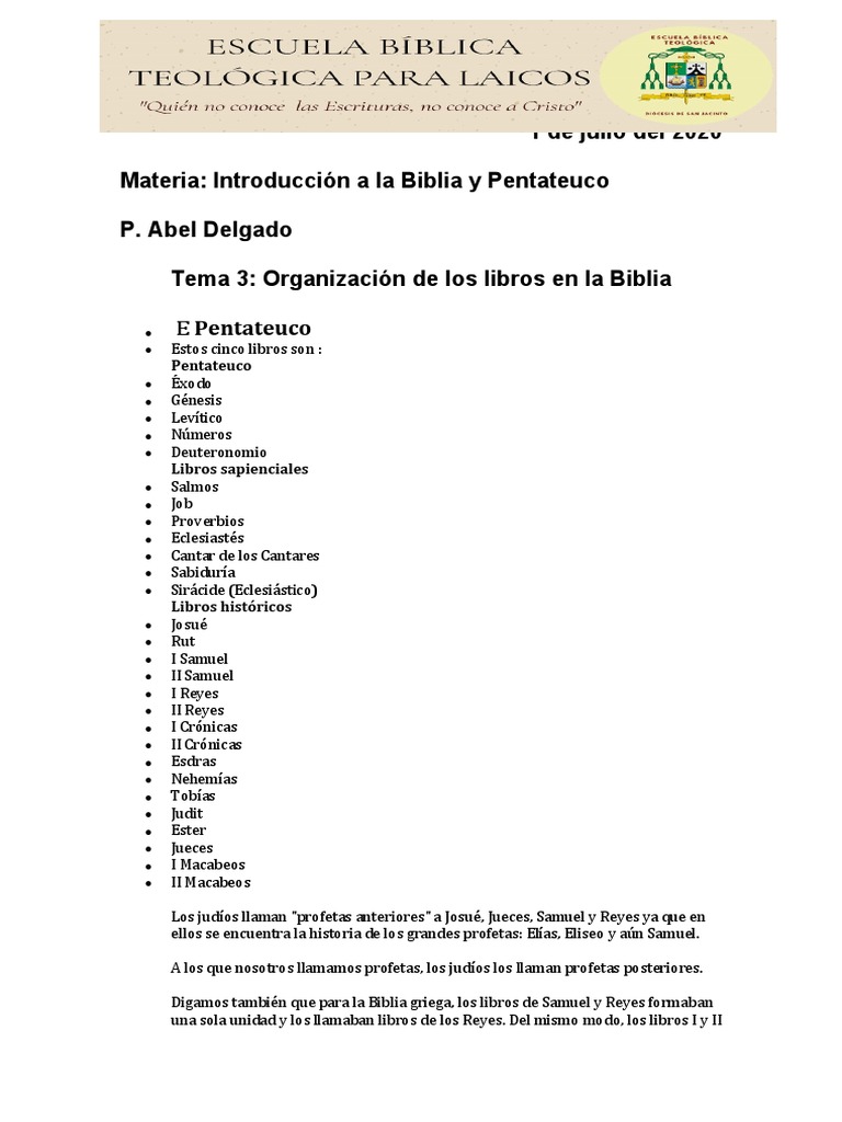 3 CLASE 1 Organización de Los Libros en La Biblia | PDF